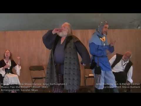 The Bardic Hydra Show (John Inchingham) The Bardic Hydra Show (John Inchingham) - John Inchingham & Cerian Cantwr lyrics: John Inchingham music: Tae the Beggin' (Roud 286) arrangement: Lorelei Skye Pennsic 49 House Sans Nomen Concert |