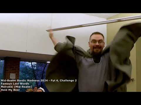 Hold My Beer Famous Last Words: Hold My Beer - Melrakki Recorded at Mid-Realm Bardic Madness 2024 in the Barony of Roaring Wastes. Famous Last Words: Come up with some famous, infamous, not-so-famous, ridiculous, pithy, etc, last words that just have to be said.... in Haiku form! Haiku Example: A poem that has Syllables five-seven-five It's something like this |