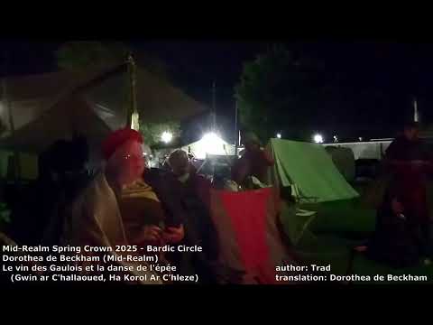 Le vin des Gaulois et la danse de l'épée Le vin des Gaulois et la danse de l'épée - Dorothea de Beckham Recorded at Mid-Realm Spring Crown 2025 in the Marche of the Marshes. author: Trad translation: Dorothea de Beckham |
