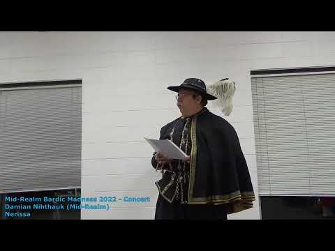 Nerissa Concert: Nerissa (music: John Denver) - Damian Nihthauk Recorded at Bardic Madness 2022 in the Shire of the Ravenslake. lyrics: Damian Nihthauk music: Calypso (John Denver) Concert: If anyone has a piece (or pieces) they're dying to perform, but that doesn't really fit any of the criteria - this is the spot for it. |