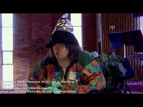 What Cerian Said When We Served Him Vegetables Scenes from a Hat: What Cerian Said When We Served Him Vegetables - Hilla Stormbringer Recorded at Mid-Realm Bardic Madness 2025 in the Barony of Flame. Scenes from a Hat : This is an improv game! The patron will read out a number of scenes from a hat. Act out a short scene inspired by the prompt. NPCs may be available. |