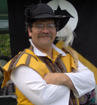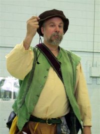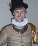 Rutger is a 16th Century Dutch gentleman. The disorder stemming from the Spanish oppression in his country have adversly affected his fortunes, often leading him to sea, where he has picked up martial and musical skills from divers countries, even unto those of the Turks and Moors. He is sometimes seen upon the rapier field when not entertaining friends by making music, and offering the meads and wines which he crafts in his winery. He very often plays with his friends in the troupe Faire Companie. Daniel Bouwman, M.D., M.P.H., practices part time Occupational and Environmental Medicine in Kalamazoo Michigan, while aspiring to become a better guitar player and songwriter. Rutger's cd, White Swans Black Ravens, can be purchased here. |