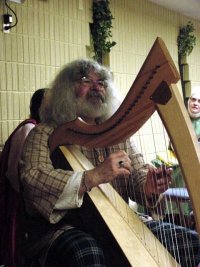 He was Kingdom Bard of the Midrealm during the reign of Edmund V and Kateryn V which he enjoyed very much. At Pennsic and Gulf Wars Breddelwyn has harped on the battlefields. He has taught An Introduction to Harp class for those who would like to see if they would want to pursuit playing harp. Breddelwyn has, also, taught a class on the Celtic Bardic schools. At SCA event feasts he has provided ambient music. |