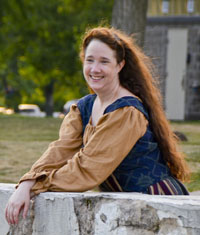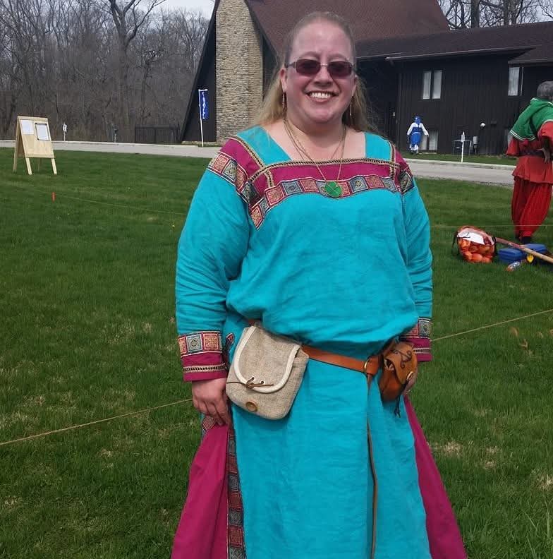 In the SCA, Brendan has lived in three different kingdoms since ASXIV. He has dabbled in heavy fighting, leatherwork, armoring, sewing, and calligraphy and illumination, but is best known for bardic activities. He served as the Queen's Bard for Savaric and Julianna. Corrie Bergeron, M.Ed. is an instructional designer with a specialty in instructional technology. He works at a community college in Northeast Ohio helping professors effectively use technology for teaching. He teaches the following SCA classes: