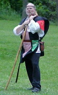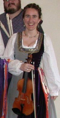 Persona: 15th century fiddler, who came from a musical family, who lived near the Blackwater River in Southern Ireland. Over the course of his travels, my father brought me back a violin from Italy, which I have played for many years. When dad died, my ma decided to marry me off to a much older man. I decided that I did not care much for that arrangement, and ran off to my aunt, where I became somewhat of a loner. SCA: Joined in 1987, and apprenticed in 1989 to Mistress Jehanne de St. Brieuc, of the Barony of Roaring Wastes. We had been going pretty well as a SCA dance band for many years, doing dinner theater fund raisers for St Charles Catholic Church in Detroit. But as time passed, the group faded away to doing an occational demo. I moved out of the direct vicinity of Roaring Wastes, and into the area of the Shire of Talonvale. Where I have joined with their local music group, and have gotten back into SCA on a more full time basis. She plays in the troup, Faire Companie. Mundane life for me consists of being in the CAD/engineering area of the local electric/gas utility. I have two children who have dragged me back into the SCA, and are gearing up to be fine adults. I have played violin and viola for approx. 25 years, and have taken up the viola de gamba. I have recently taken up weaving and spinning, and have dabbled in calligraphy. |