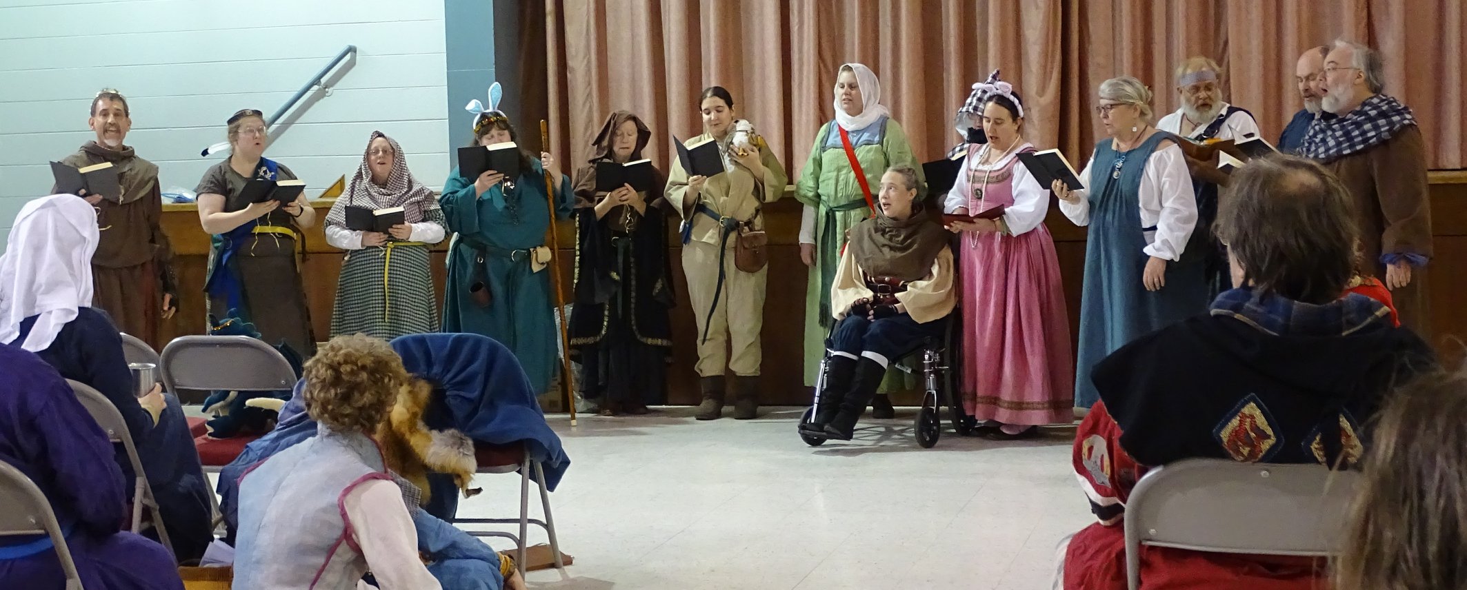 The Sternfeld Rapier Bards are a group of bards who are also (mostly) authorized rapier fighters. We sing and we stab! We also have a high proportion of cooks, scribes, and shenanigans. We've had some incredible weekend workshops to improve our writing (the Slumber Bard-y!).