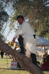 Started in the farthest eastern side of An Tir in the shire of Sigelhundas back in ASXXV . Quickly gained notoriety as a singing morning wake herald spreading terr.....er...joy throughout the kingdom . When elevated to the Pelican in ASXXXVI it was noted that I would perform this duty without thought of personal safety. With this word fame it was put to good use in a number of pie auctions in aid of the An Tir and Avacal travel funds raising over $7000.00 across many years.