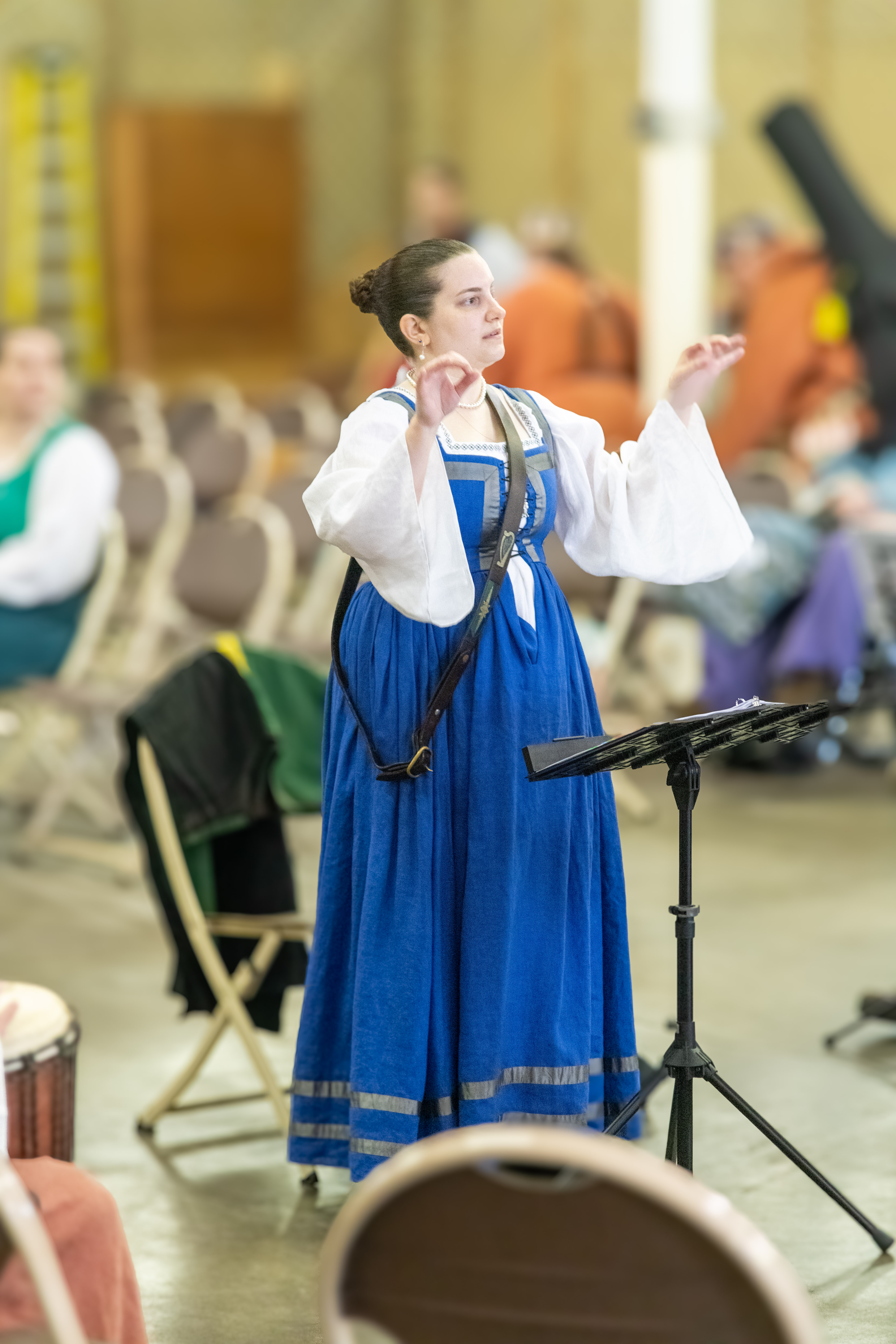 fast notes. She sings and conducts around the Known World, and she writes the occasional arrangement when inspiration strikes. She also enjoys teaching about music topics. Annalena has served as Bardic Champion for DonalBane and Katrina, Fifth Baronage of Brendoken, and she won the NOBLE Bardic Cup at NOWM in 2023. Just prior to that win, she was tapped by Louis and Sadb to serve in their Bard Guard. At Pennsic LI (2024), she was the Performance non- Laurel entrant for the Midrealm's A&S War Point Team. She became apprentice to Baron Tonis van Driele at Simple Day 2025. Annalena can be found wherever there is music, especially singing. She loves repertoire that lets her show off her voice and acting, whether it is period music or an SCA song. She also loves collaboration, as she sings in the Brendoken Choir and co-directs Musica Nebulae of the Cleftlands, focusing on music planning and conducting. See "SCA Chronicle" under External Links on her MiddleWiki page for her arrangements, class handouts, music director programs, and solo repertoire list. |